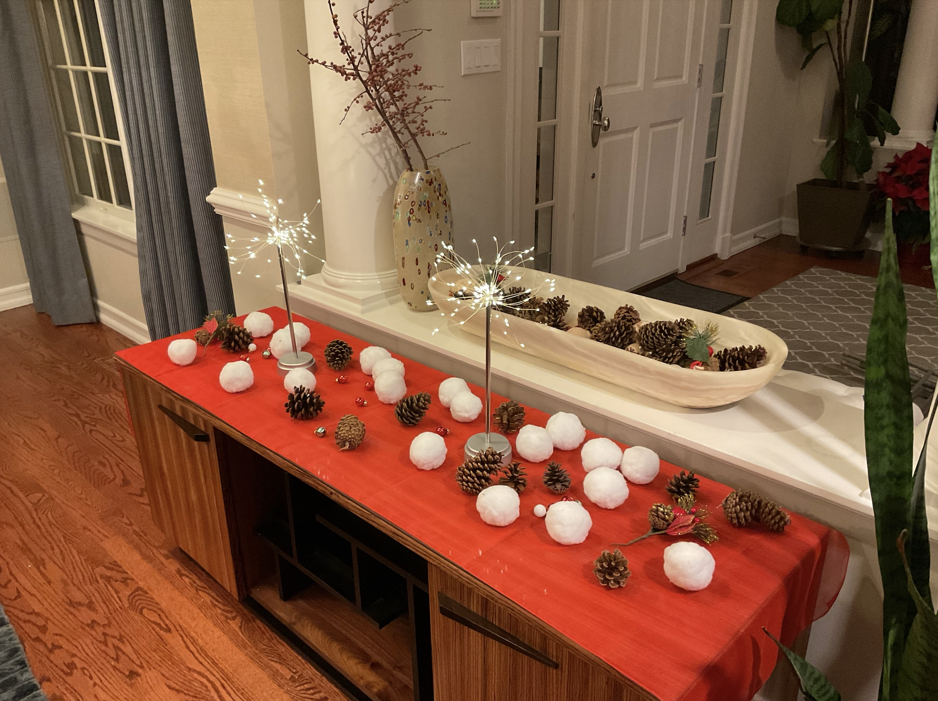 This Christmas Day brunch for family was a festive celebration, thoughtfully decorated to capture the joy and warmth of the holiday.. The table setting featured rich green chargers paired with deep red plates, creating a classic Christmas color scheme that instantly set a cheerful tone.